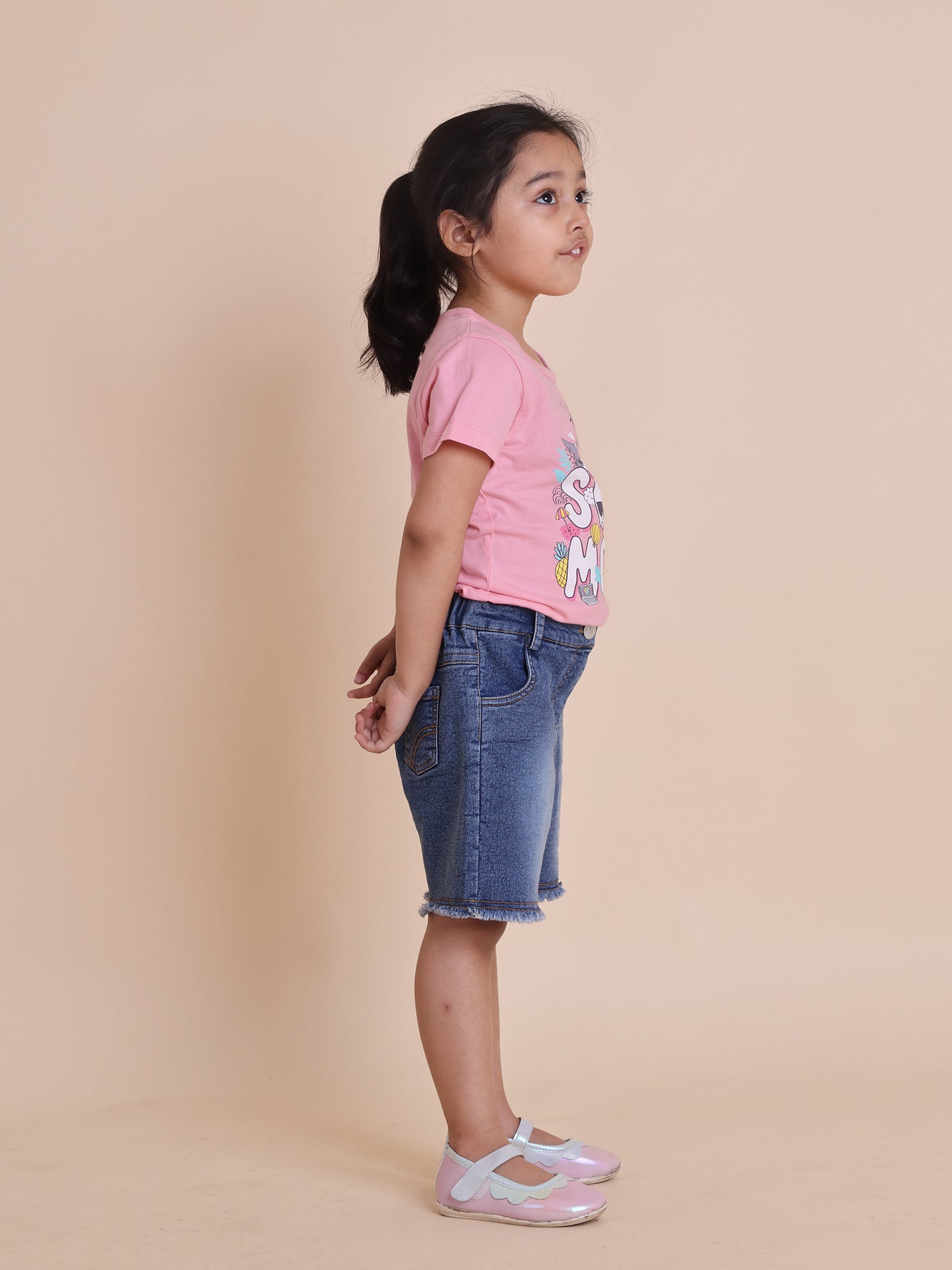 The Girls Pink Text Print T-Shirt is her ticket to showcasing her vibrant personality with every wear. As she slips it on, the soft fabric becomes a canvas for her individuality to shine. The playful pink hue complements her rosy cheeks, adding a touch of sweetness to her ensemble. But it's the text print that truly steals the show—it's like her own secret message to the world, revealing her passions, dreams, and quirks. With each glance, she's reminded of the power of her words and the beauty of being uniquely herself. This isn't just a t-shirt—it's her signature style, boldly declaring to the world, "Here I am, full of life and ready for anything!"
